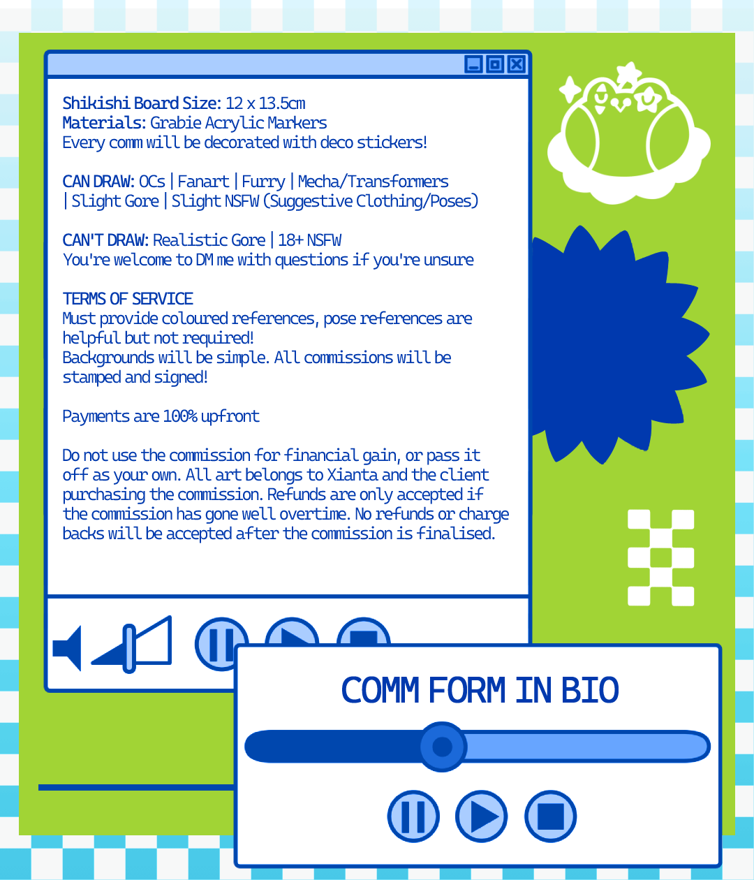✦Materials: Grabie Acrylic Markers. Every comm will be decorated with deco stickers!